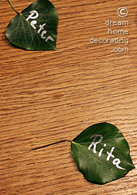 place 'cards' were dark green ivy leaves. We wrote the names with a silver pen and placed a leaf on each plate.