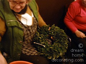 The most experienced women are incredibly quick at wreath making. Their hands just fly. In the time it takes me to create one Advent wreath, they easily finish two or three!
