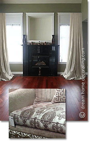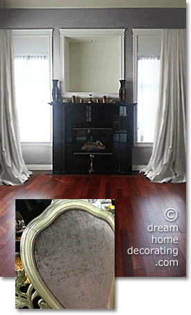 Ann contacted me with an interesting series of questions about putting French-inspired (Louis XV/XVI style) furniture into an open concept living & dining room that has green walls and cherry-colored hardwood flooring. (The rest of the furniture comes in a choice of silver and off-white or silver and black.)