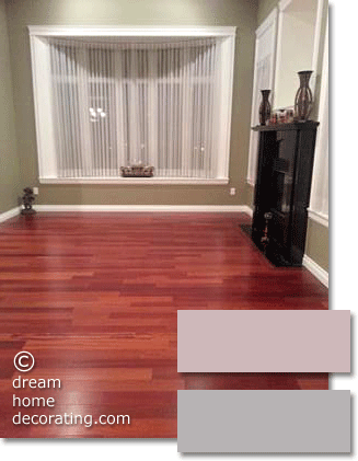 a) how to make light greyish purple, pale pink, white and silver work with green walls and cherry stained flooring, and