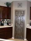 pantry door was a spray-paint of a metallic bronze, then I bolted on an inexpensive metal wall hanging for a fabulous custom look.