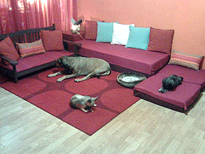 I live in a one-bedroom flat with my three dogs, two of which are toy-sized. I myself am not very tall - about 5'2! So sitting on regular sofas has always been rather uncomfortable for me as my feet never reach the floor!
