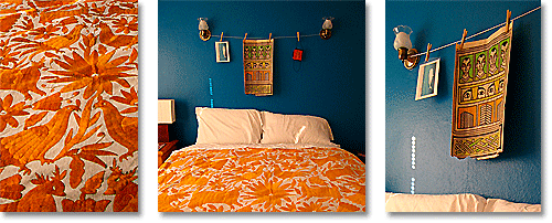 Here are two blue/orange complementary bedroom color schemes from Mexico; one from Oaxaca (left) and one from Yucatán (right).