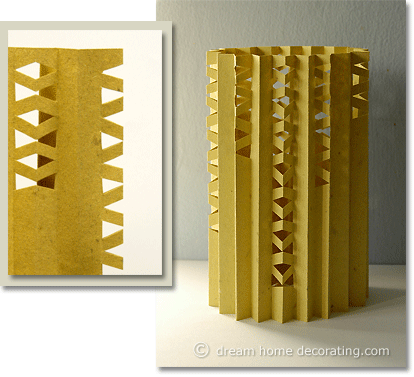 To make a candle lantern, cut your paper to the height of the glass candle holder before you start folding.