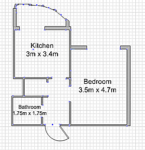 Bedroom: 11.5' x 15.4' Bathroom: 5.75' x 5.75'