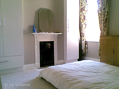 The smaller bedroom in my Victorian flat was simple and relatively easy to remodel ... apart from that little wallpaper glitch and, well, the built-in cupboards.