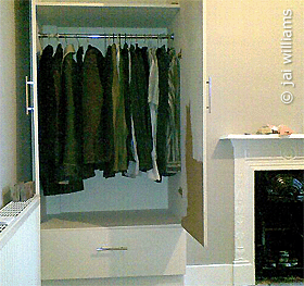 Renate's comment:I love that little fireplace & wonder whether we could do something similar in our bedroom as well! And your built-in cupboards are awesome. The room looks like an oasis of calm!